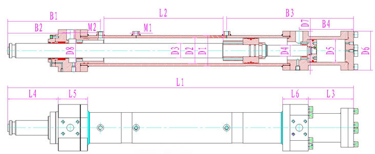 產(chǎn)品型號 | 行程 | 安裝距 | 額定壓力 | L1 | L2 | L3 | L4 | L5 | L6 | D1 | D2 | D3 | D4 | D5 | D6 | D7 | D8 | B1 | B2 | B3 | B4 | M1 | M2 |