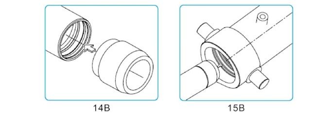 徹底檢查每節缸筒,充分潤滑油封套件和油封槽,給每節缸筒裝上新油封套件。